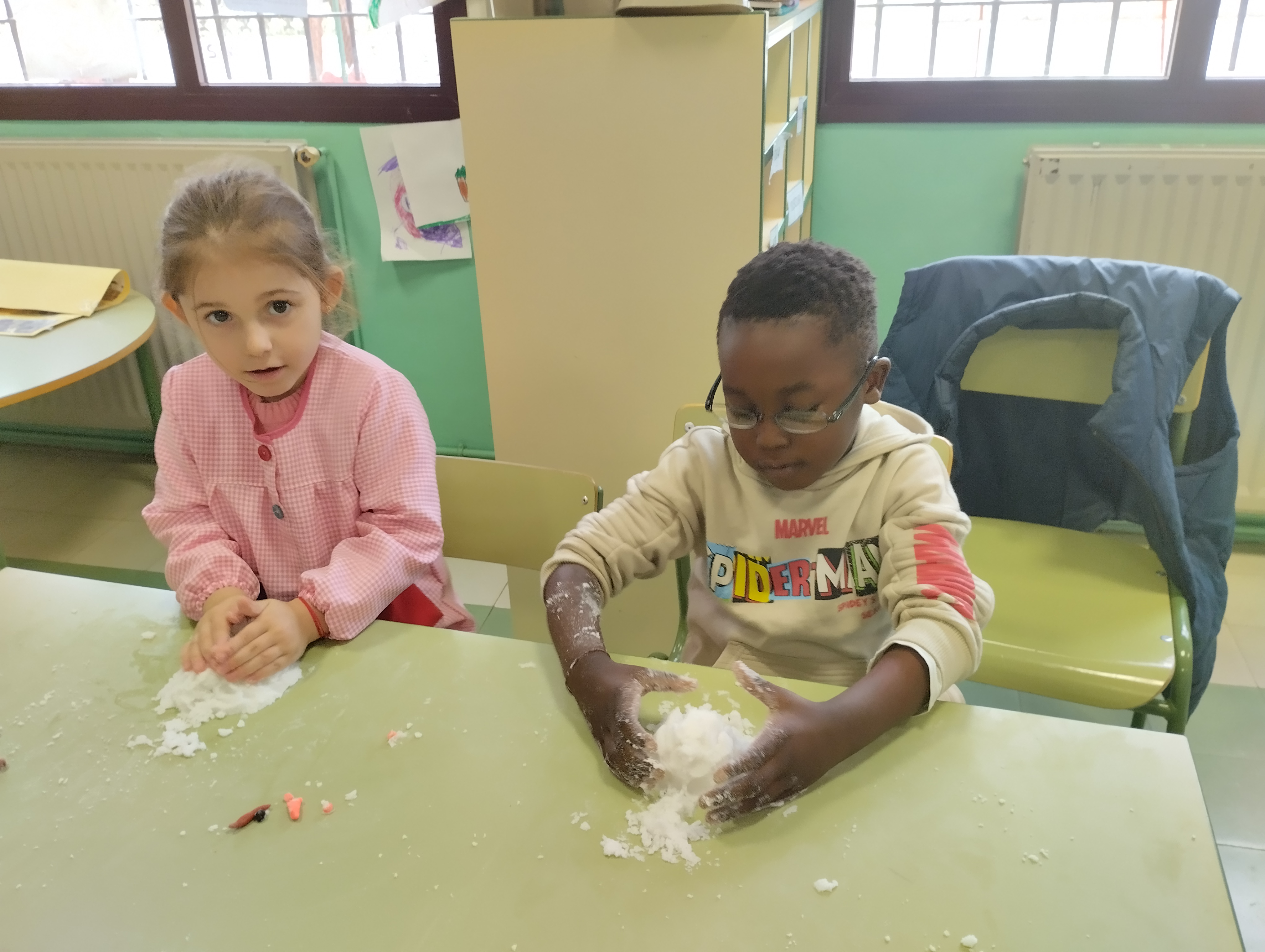 NIÑOS/AS DE INFANTIL HAN FABRICADO SU PROPIA NIEVE Y SE LO HAN PASADO BOMBA